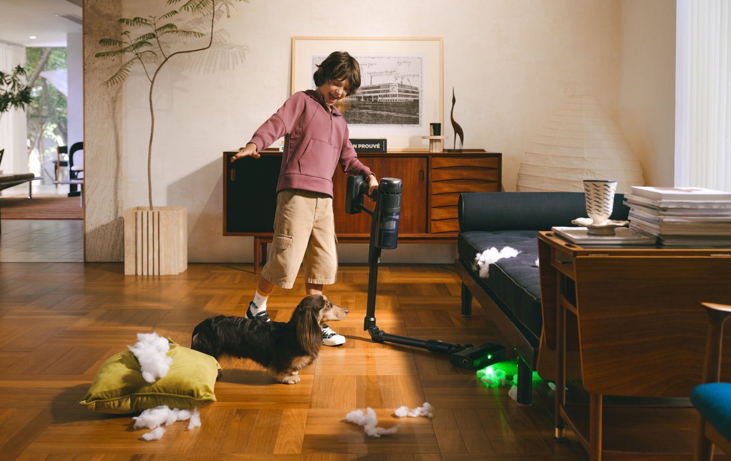 4. Henviser til Roborocks tidligere trådløse stangstøvsugermodeller. Resultater baseret på Roborocks interne test. De faktiske resultater kan variere afhængigt af brugsforholdene.
